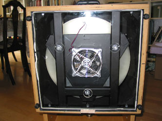 In addition to the weight is temperature adjustment the other issue with such a big mirror. In order to help the mirror to reach ambient temperature faster, I have added a fan.
